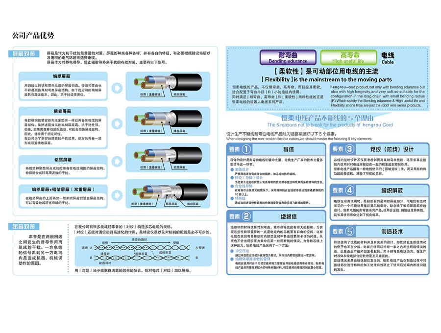 江苏恒柔拥有各类型先进生产设备和检测仪器,汇集了研发和技术精英,采用日本、德国先进工艺和生产制造技术--特殊的导体结构设计、特殊的屏蔽设计,采用优质材料,使移动线缆极其柔软、可以在更小弯曲半径的拖链系统中使用,让移动线缆拥有更长的弯曲寿命,满足于现在和未来智能化工业发展对线缆性能的高要求。